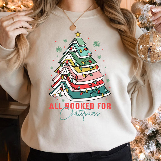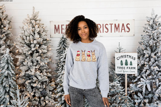 Christmas Trees with Snowflake Sleeves in White Ink - GILDAN CREWNECK ONLY