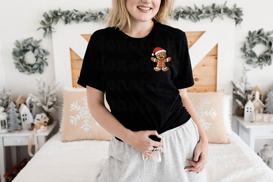 Gingerbread Man with Santa Hat Faux Glitter POCKET