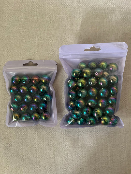 16mm Beads - Galaxy Style Beads - Green Color Only Bag
