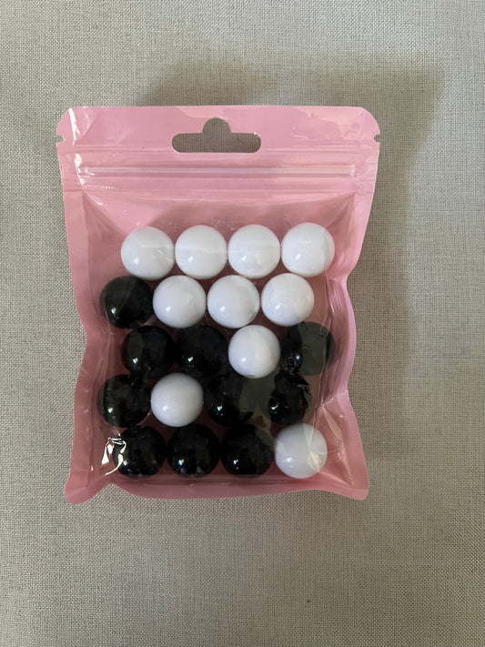 16mm Beads - Glossy Style Beads - Black & White Color Only Bag