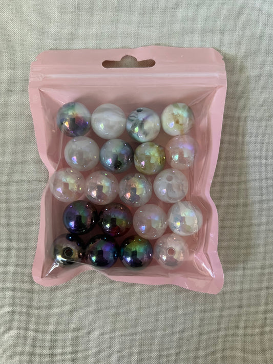 20mm Beads - Glossy Iridescent Style Beads - Random Color Mixed Bag