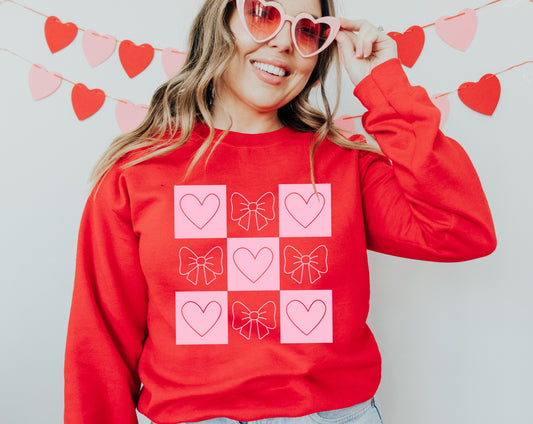 Hearts & Bows Checkered in Baby Pink Ink