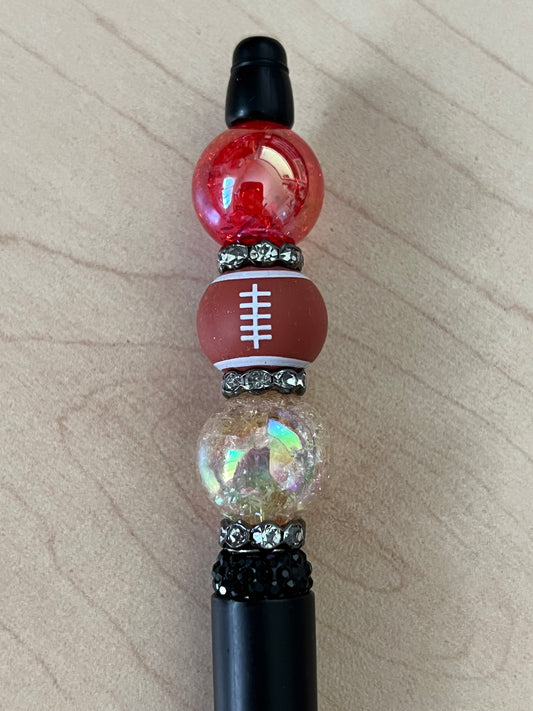 Football w/Team Red & Gold Crackle Beads Inspired Beaded Pen
