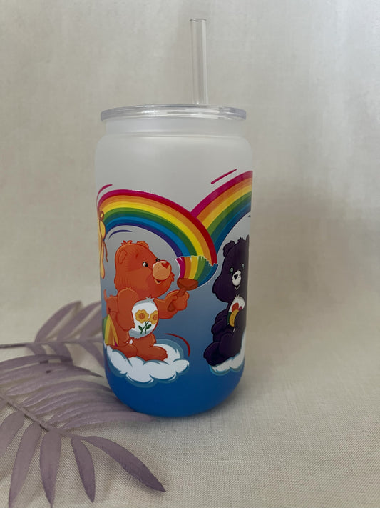 RTS - Bears 16oz Blue Ombre Glass Cup with Plastic Lid & Straw