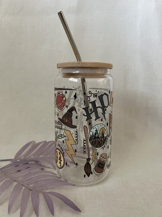 RTS - HP 16oz Glass Cup with Bamboo Lid & Metal Straw - CLEARANCE